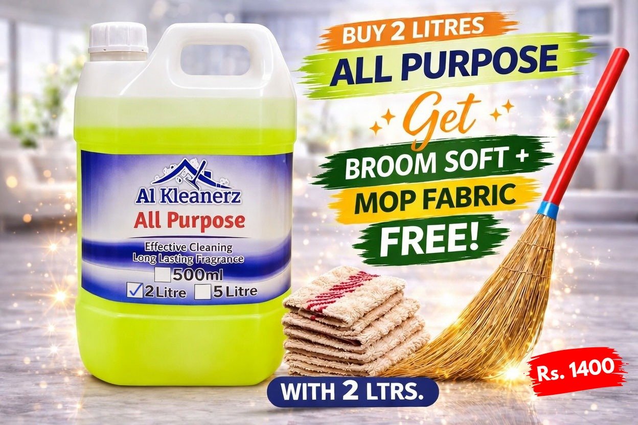 Buy 2 Litre All purpose Get Free Broom Soft + Mop FabricBuy 2 Litre All purpose Get Free Broom Soft + Mop Fabric